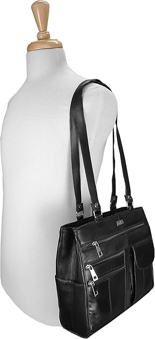 This Quenchy London ladies’ shoulder bag is crafted from soft black sheep nappa leather with faux PU double straps. Fully nylon-lined, it offers 8 pockets, including 2 main zip compartments, multiple front and rear pockets, and a smartphone pouch. Measuring 31 x 25 x 10 cm with a 35.5 cm strap drop, it’s perfect for everyday, work, or special occasions.