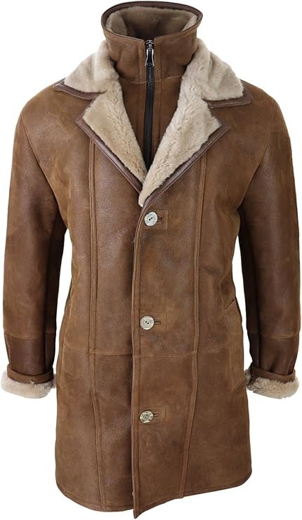 TruClothing Mens 3/4 Duffle Jacket Real Sheepskin Long