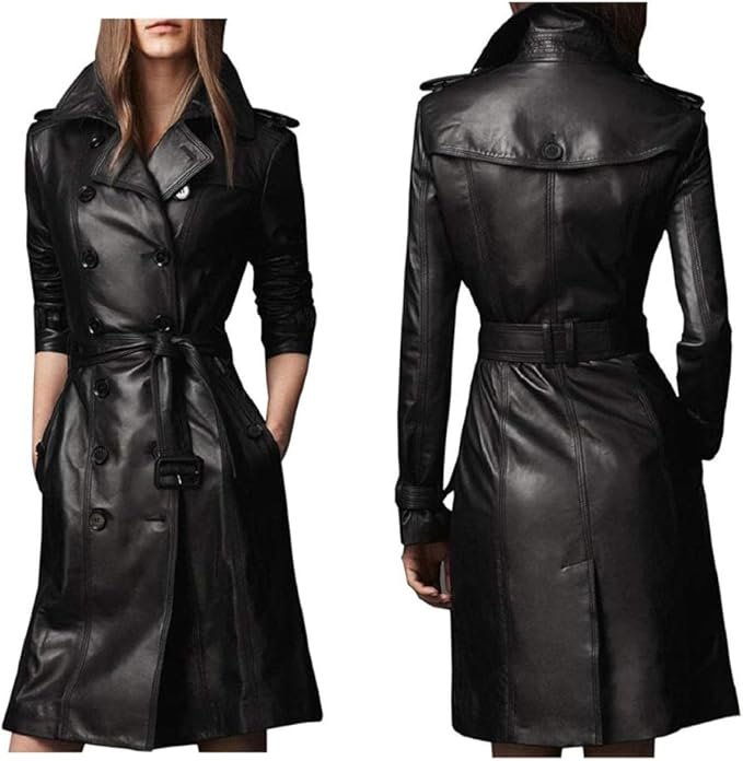Womens Trench Coat for Designer Black Trench Leather Long Coat